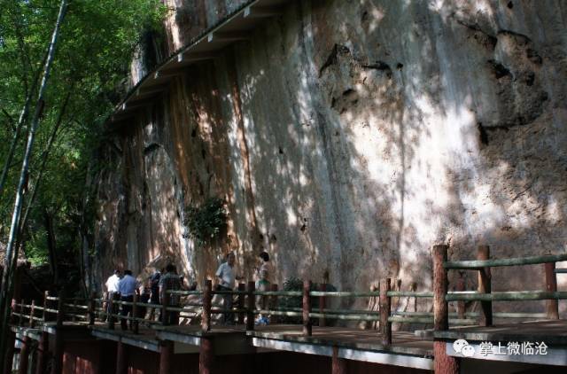 >>>>千米国画长廊:因远望酷似一幅浓黑重彩的中国山水国画而得名,壁画陡立成崖,壁画长1.5公里,峭壁高80—180米,最高达280米。崖面由于杂质浸染及附生攀援植物的点缀变得色彩斑斓,如同一幅巨型壁画。