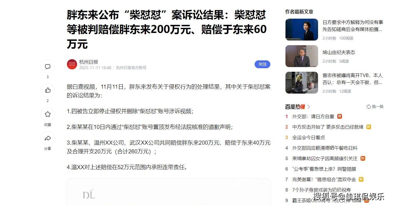 柴怼怼还要赔偿胖东来200万,以及于东来个人60万。