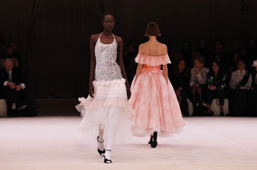 1月23日,模特在法国巴黎高级定制周上展示法国品牌香奈儿2024春夏新品。